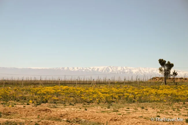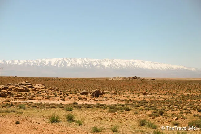 遠處可見地平線上躺著一橫雪山,這就是著名的阿特拉斯山。
