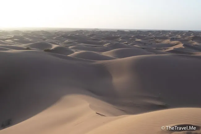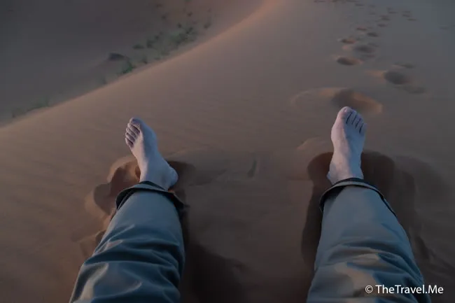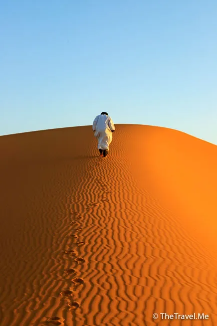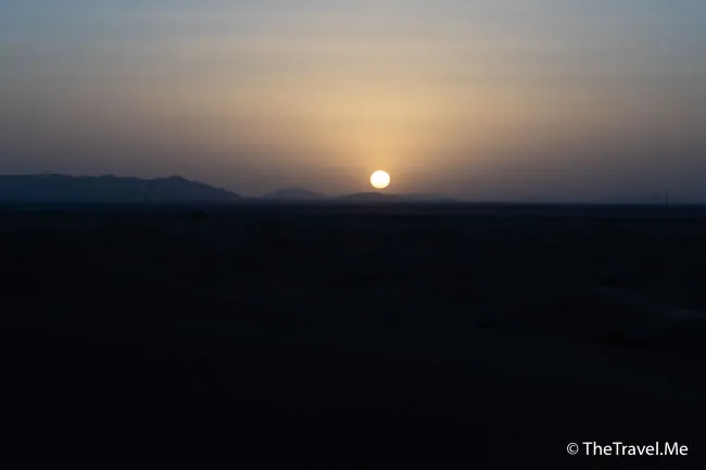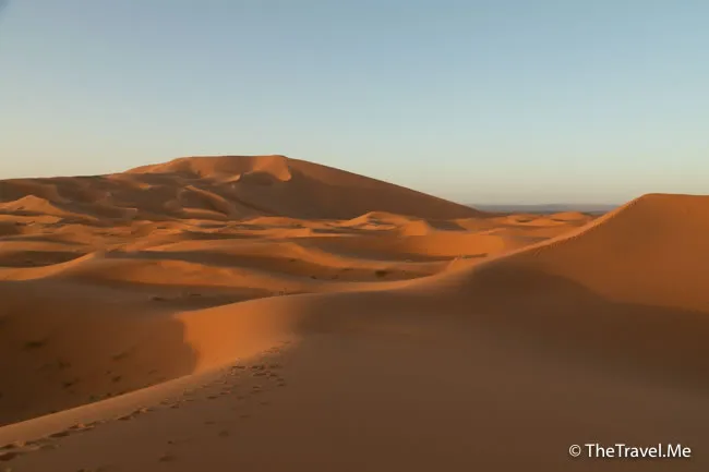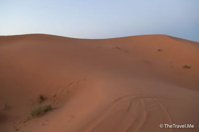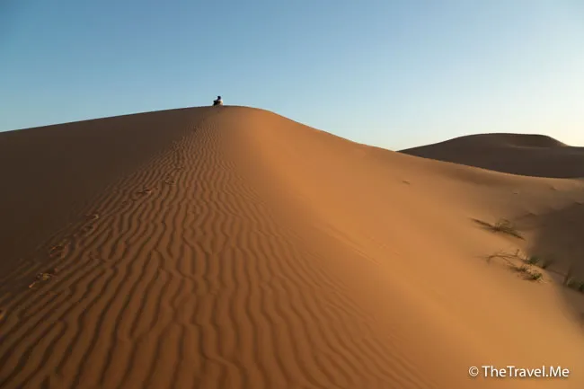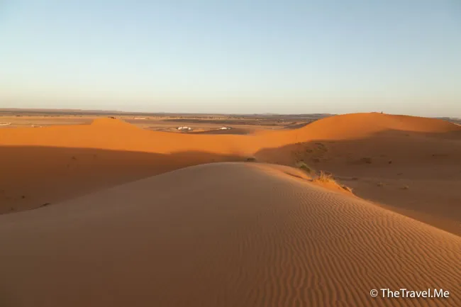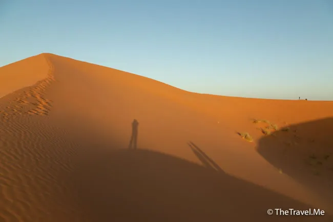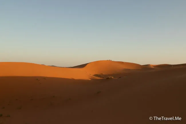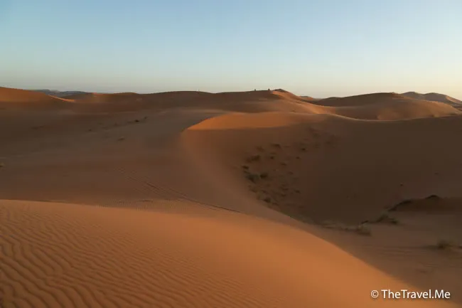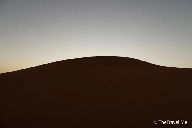 太陽開始落山,將偌大的撒哈拉染成橙紅色,好一抹魅惑人心的淺笑。