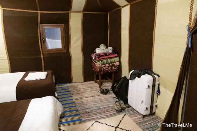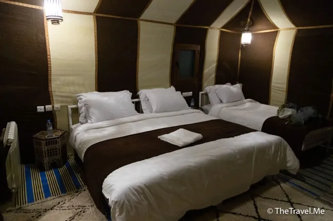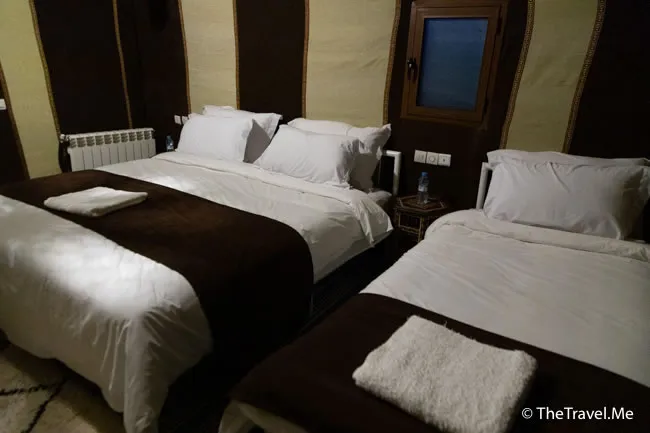 一個帳幕就是一個房間,地方甚大,有一張雙人床和一張單人床,適合家庭。