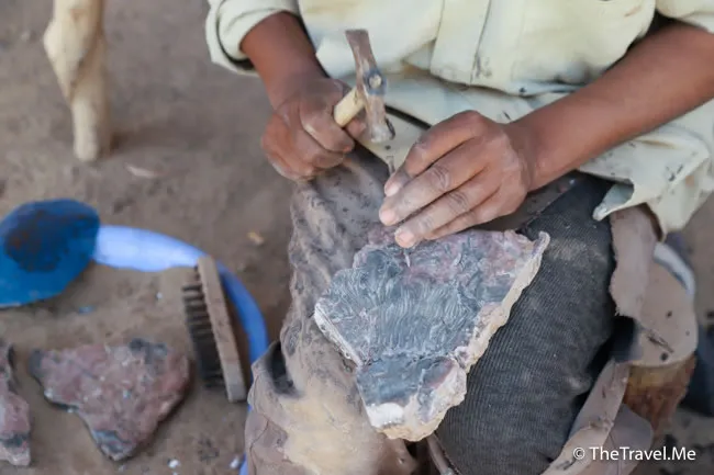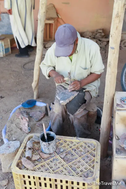 原材料係由距離這裏十幾公里外的山頭發掘,因為撒哈拉在遠古時代曾經是一片汪洋,所以有大量海洋生物的化石。