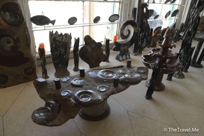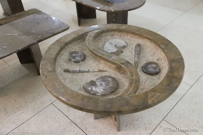 產品比想像中精美,例如這張化石枱,上面有多種已經絕種多年的海洋生物,恍如一幅古代海洋的浮世繪。