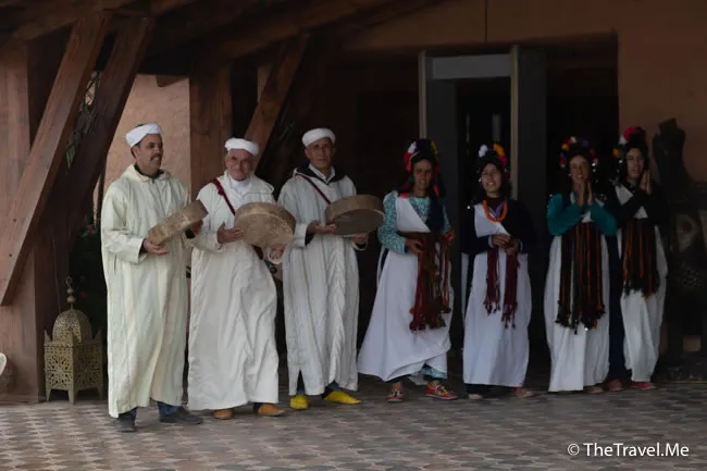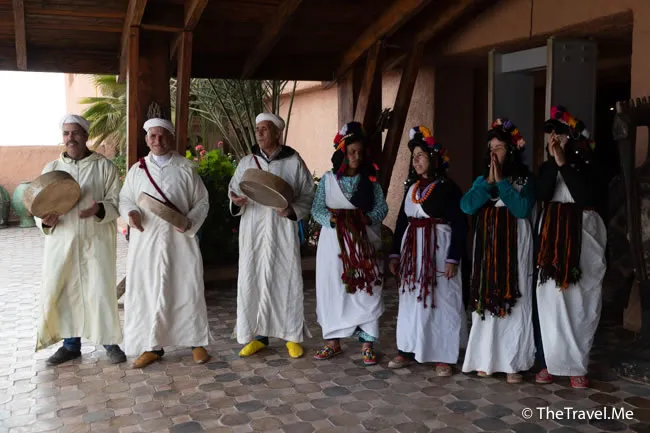 表演雖然簡單,但每個表演者都穿着摩洛哥的傳統服飾,熱鬧有趣。