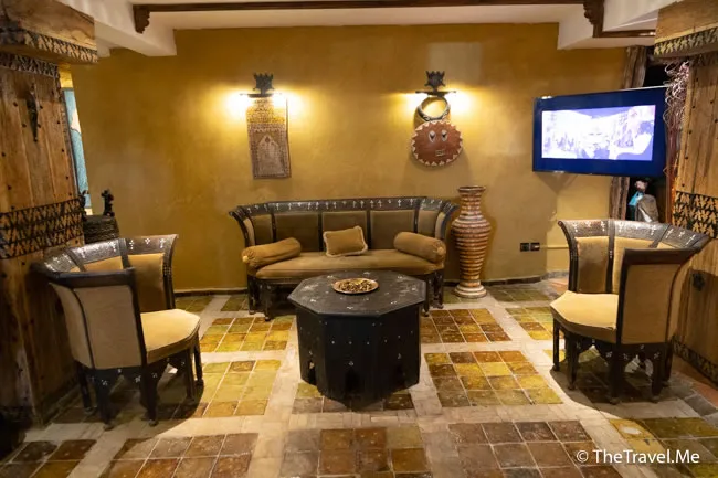 這間酒店不是什麼古蹟,內部裝修卻古色古香,而且擺放了很多摩洛哥的傳統家具和擺設,粗眉仔覺得自己好像進入了一個民族博物館。