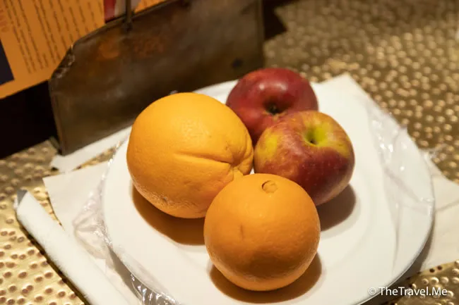 房間內奉送生果盤,但蘋果看起來不太新鮮,似已經擺了一段時間。