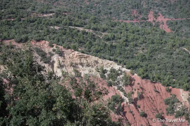 由這裏望出去,可見一片紅白相間的岩壁,漂亮到極。