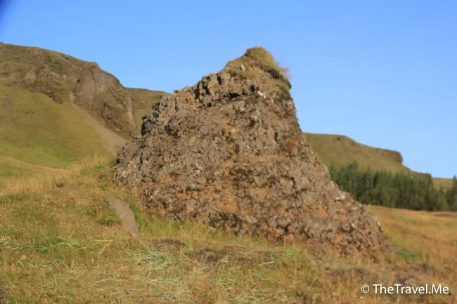 途中經過一個愛爾蘭僧侶的墓,其結構非常簡單,只有一堆石頭,畢竟冰島從前只是個蠻荒之地。