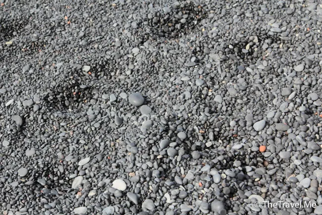 沙灘上的沙全部都是由附近火山的玄武岩造成的,所以又黑又粗。