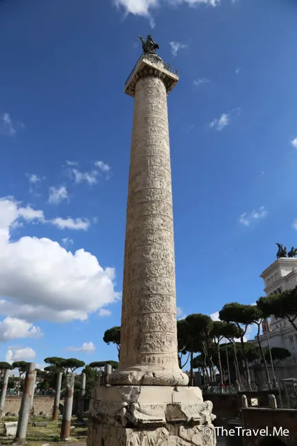 圖拉真柱(拉丁語:COLVMNA·TRAIANI)為羅馬帝國皇帝圖拉真所立,以紀念圖拉真勝利征服達西亞,於113年落成。柱身上有精美浮雕,聞名於世,但可惜隔得太遠,看得不太清楚。
