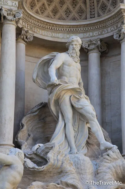 噴水池遠遠比粗眉仔想像中巨大宏偉,據知,噴水池係由多個藝術家歷經幾百年建成,而且剛剛才翻新過,所以看起來白雪雪,好似新的一樣。特雷維噴泉的後側是波利宮,有一排漂亮整齊的科林斯柱,兩者配合起來更覺氣勢雄渾。