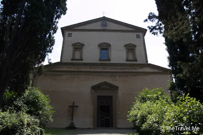 聖米尼亞托是一位曾效力古羅馬軍隊的亞美尼亞王子,因被指為基督徒而被帶到翡冷翠的城門外,皇帝下令將他扔到露天劇場餵飼猛獸,但猛獸拒絕吞噬他,於是皇帝下令將他斬首,據稱被斬首後,他拾起自己的頭顱,渡過阿諾河,走到山上。
