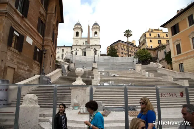 西班牙階梯曾經出現在電影《金枝玉葉》的場景中,雖然說是經典,但畢竟已經是部咸豐年間的電影,這裏遊客如此多,不一定都是為了這部電影而來。非常可惜的是,西班牙階梯正在維修,到處是難看的圍板和棚架,粗眉仔即刻冇晒心機。