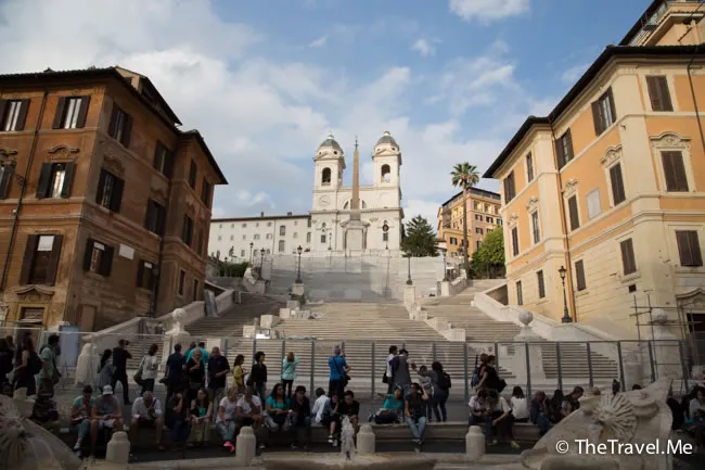 西班牙階梯的盡頭,是山上天主聖三教堂(Trinità dei Monti),雖然有另一條路可達,但兩人決定不上去了。