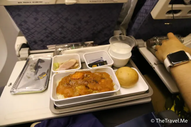 飛機餐是港式焗豬扒飯,出乎意料地好食,令粗眉仔對這間香港的老牌航空公司再次燃起希望。