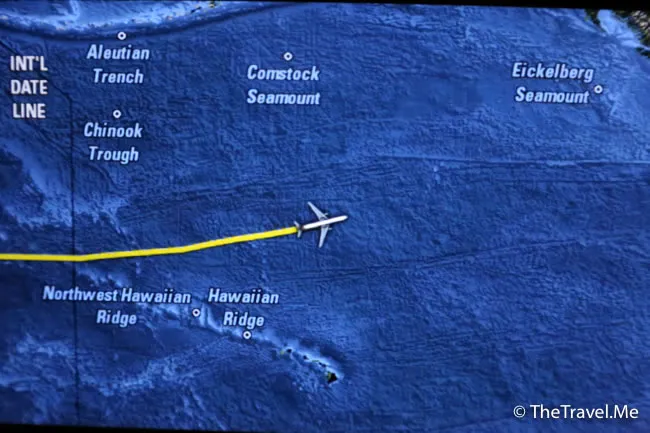 粗眉仔和豬豬因為是坐在近機尾位置,所以當飛機遇上氣流時就搖晃得很利害。粗眉仔咁大個仔,還是第一次橫越茫茫太平洋,幾小時過去了,屏幕上的電子地圖都沒有任何變化,飛機彷彿完全沒有移動過一樣。