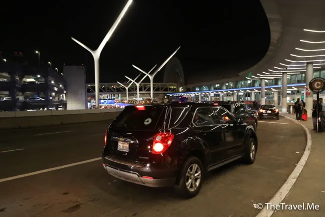 出機場時已是夜深,兩人便用召車手機程式(Lyft)召車,召車後,程式會發出指示,叫兩人上一層去離境大堂的泊車處上車。