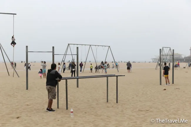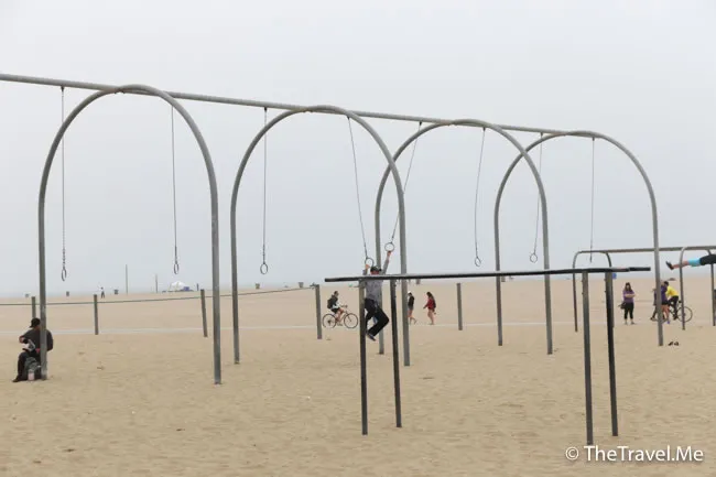 肌肉海灘(Muscle Beach)位於聖莫尼卡海灘一角,那裏設置了好些健身設備,供遊人免費使用。