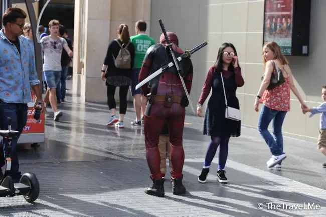 星光大道上有很多街頭賣藝者,個個都扮鬼扮馬,非常精彩,當中粗眉仔最喜歡死侍的造型。