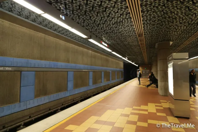 走了大概十分鐘,兩人便到了「Metro」的「Hollywood / Vine」站,這個車站雖然沒有太多乘客,卻非常有特色,值得來這裏打卡。