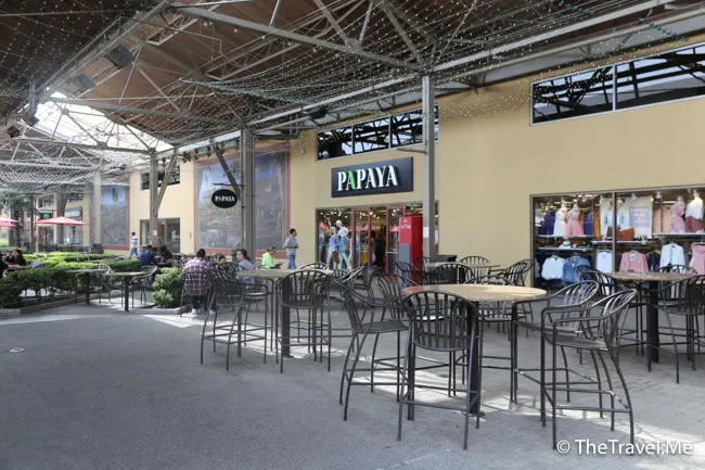 特賣場內有個偌大的美食廣場,佈置得像一個公園,環境比想像中好。