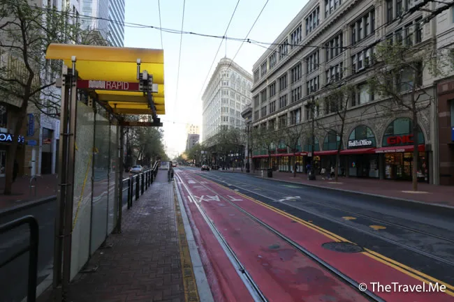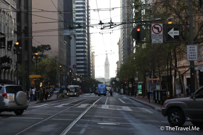 轉了兩個彎之後,電車便駛到海邊,看見三藩市奧克蘭海灣大橋(San Francisco Oakland Bay Bridge),一如其名,這條橋連接三藩市和奧克蘭。