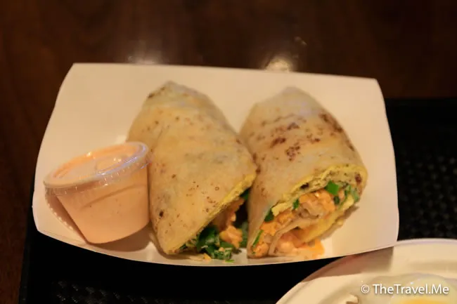 兩人先點一份捲餅,捲餅非常足料,用的蔬菜十分新鮮,越食越開胃。