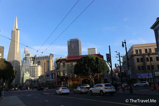 由唐人街可以清楚看見泛美金字塔(Transamerica Pyramid),這座大廈是三藩市最高的摩天大樓,據講在建造時候曾遭到反對,現在卻被讚前衛,並成三藩市的主要地標。