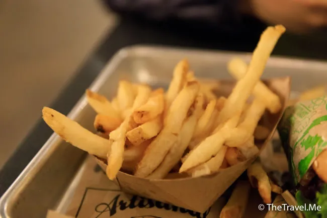 薯條係用原個薯仔切條炸成,薯仔皮仍然清晰可見,咬落非常結實,亦份外香脆。
