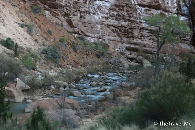 馬路係沿處女河(Virgin river)而建,冬天剛過,河水很淺而且有點混濁,原本應該是很清澈的。