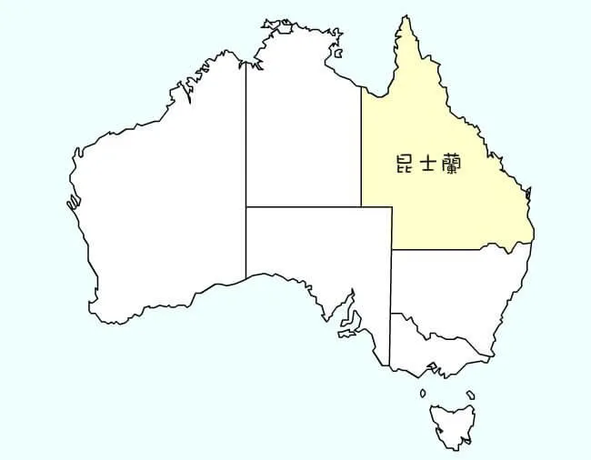 昆士蘭(Queensland)位於澳洲的東北部,為澳洲面積第二大的州,人口則排名全澳第三,首府布里斯班。由於昆士蘭有廣大地區位處熱帶、盛產礦物與蔬果,州民熱愛運動,素有「陽光之州」(Sunshine State)的美稱。