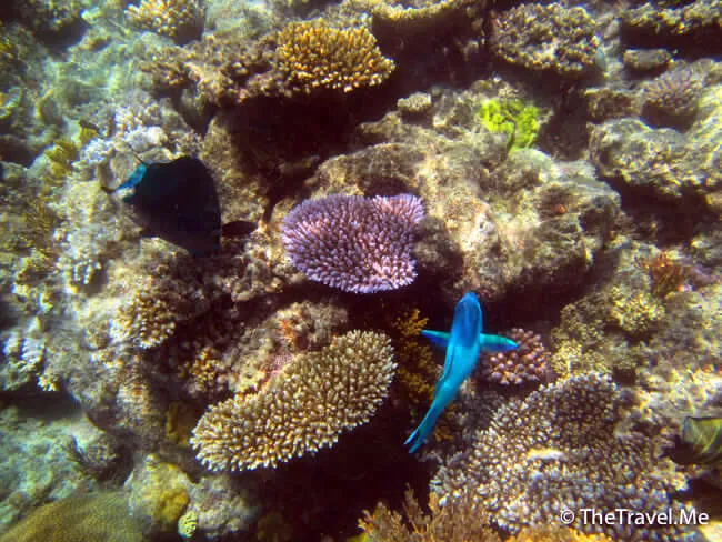 或許來這邊的人比較少,珊瑚礁個大受到人類的滋擾,顏色甚多,越看越漂亮。
