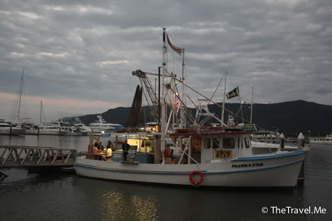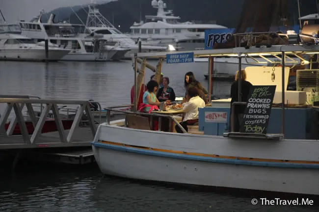 行了一會,便看見一艘標着有海鮮出售的帆船,有類香港從前的避風塘大排檔。