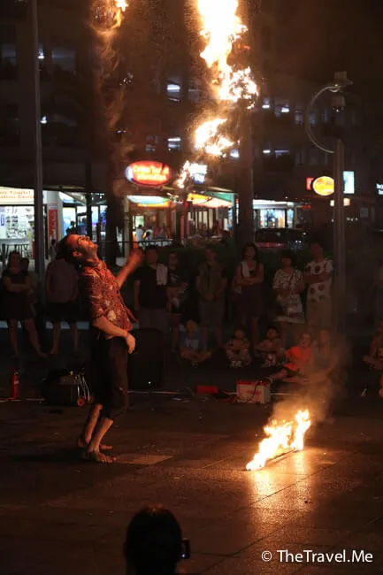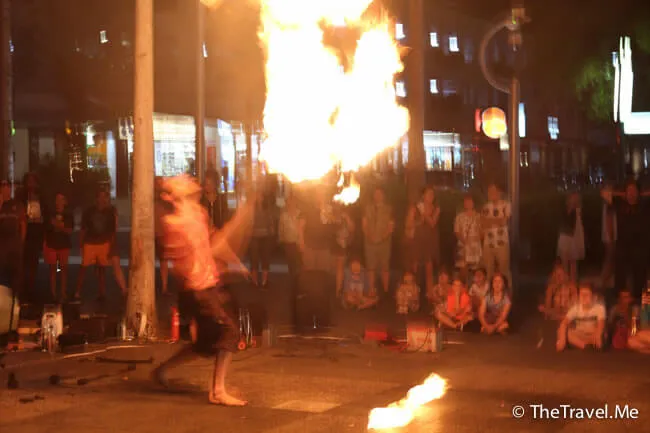在潟湖旁邊表演的,仍然是昨晚的表現藝人,兩人閑着無事,便駐足在旁邊觀看。雖然是街頭藝人,但表現得很精彩,兩人都拍爛手掌。