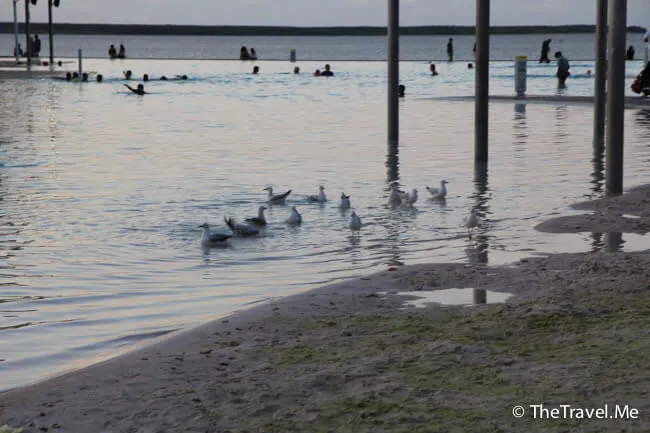 今日天氣不錯海鷗正在潟湖內嬉水,感覺十分閑適。