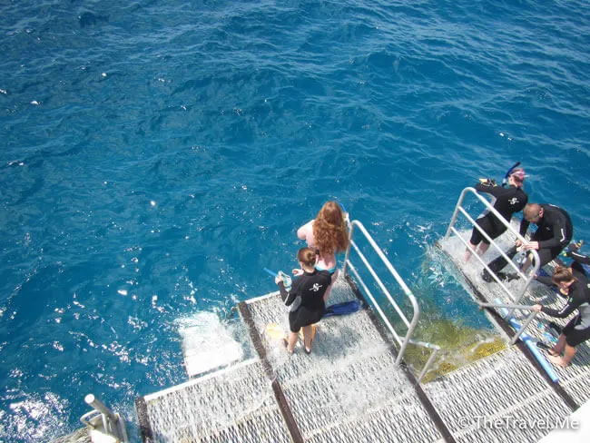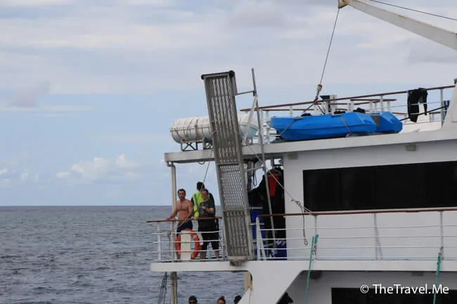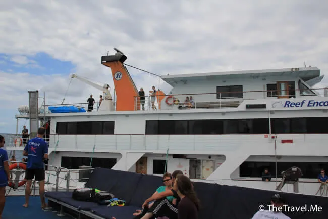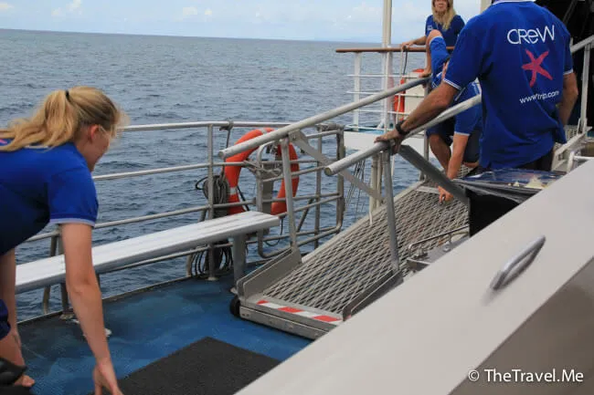 船公司是「Reef Experience」,兩人先去碼頭直接同職員登記,再坐接駁船到另一艘更大的船。
