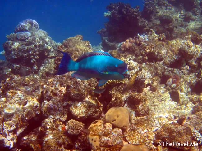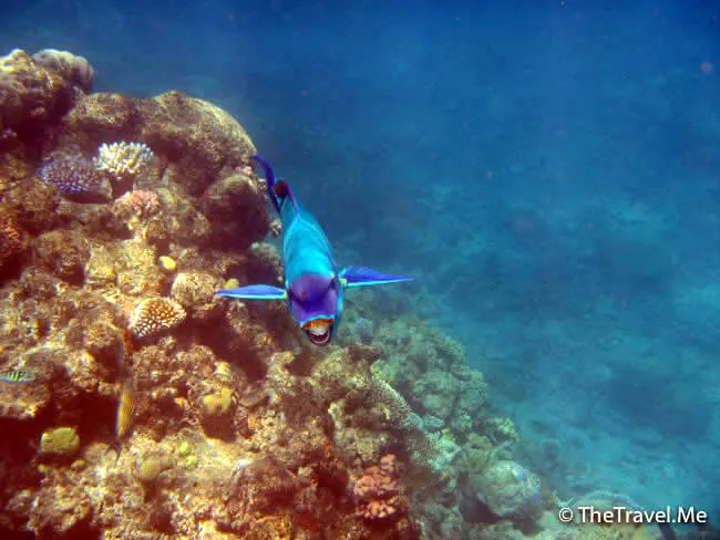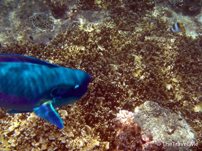 今次浮潛比較特別的,是有些可愛鸚鵡魚伴游。