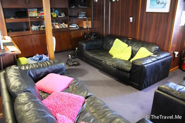 在床上躺了一會,百無聊賴,兩人於是走去飯廳旁邊的休閑室(lounge)坐坐,休閑室有幾張大沙發,還有些書本雜誌,頗為舒適。