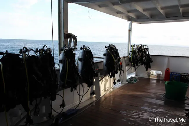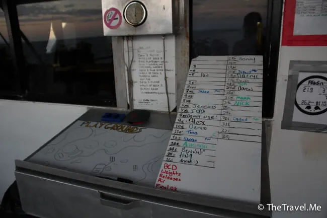 休息了一會,潛水教練便簡介夜潛的注意事項,粗眉仔好緊張。