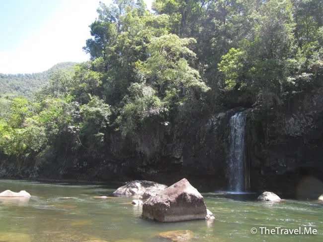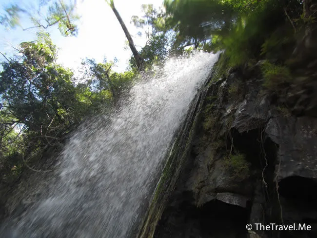 前方不遠處有道漂亮的瀑布,粗眉仔覺得自己好像來到了仙境。