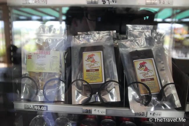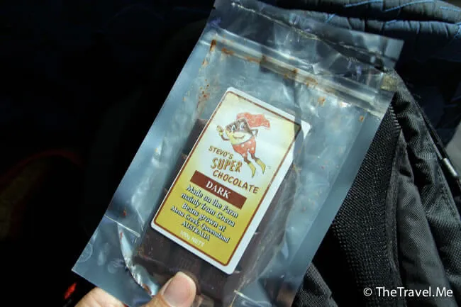 便利店另外亦有農場自家製的「超級朱古力」(Super Chocolate),朱古力放在自動販賣機內發售,粗眉仔想知道如何「超級」,亦買了一塊。