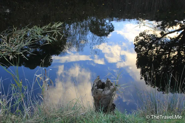 小溪蕩漾着紫藍色的水影,呈現陌生但美麗的天空,越看越令人着迷。