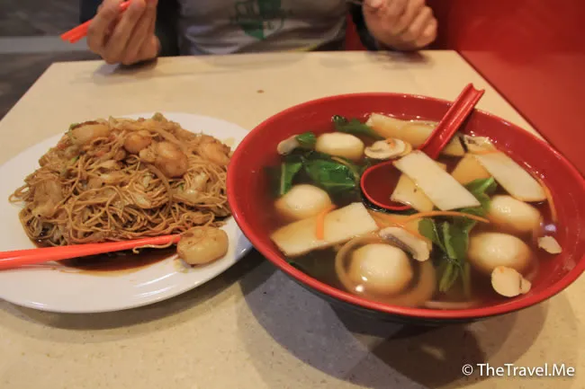 在超市購物完畢,見商場門口有一間賣中式炒麵和湯麵的唐餐館,粗眉仔忽然心血來潮:不如今晚就在這裏吃晚餐吧,反正吃了這麼多餐海鮮和牛扒,已經有點厭了。