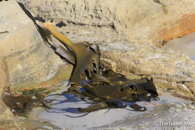 這些黑色一塊塊的原來是巨型海草,粗眉仔好奇執了一片來玩玩,發覺質感像極塑膠,非常有趣,而據阿添講,這種海草是本地一種傳統食物的材料之一。