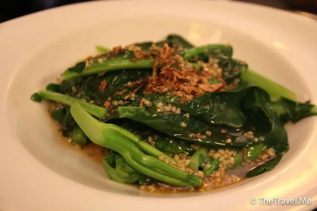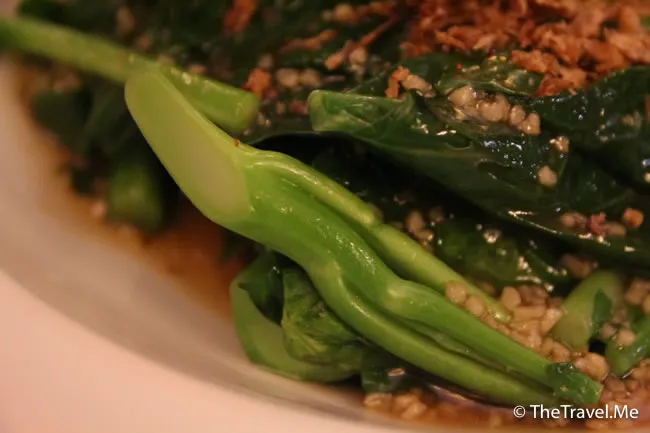 兩人很久沒有吃過炒菜,於是便加了個炒芥蘭,味道顯然為了切合本地人口味調整過,加了大量蠔油。
