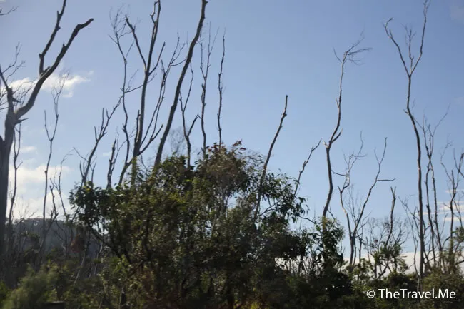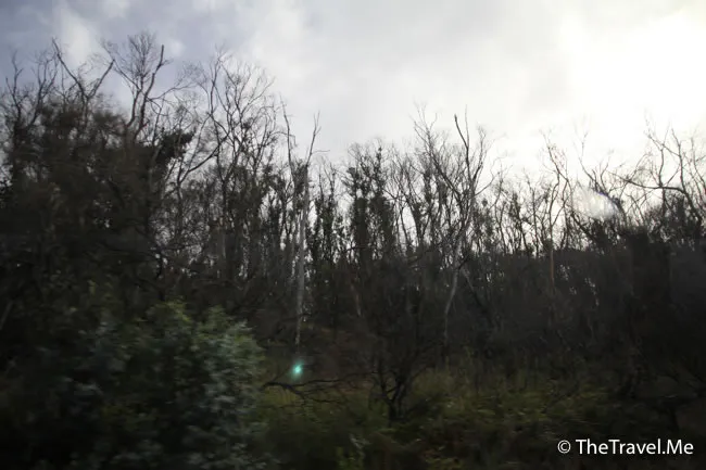 不經不覺,粗眉仔一團人的車子便駛到樹熊的棲息地,由於幾年前一場大山火,沿途的桉樹林都已成焦炭,滿目瘡痍。