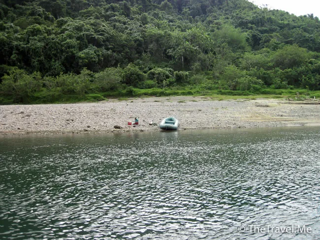 再駛了三十分鐘後,快艇便停靠到沙州上,參加激流(rafting)的粗眉仔和公主,與及那對夫婦都要在這裏下船,三名少女則繼續留在艇上,她們要去參觀村莊。