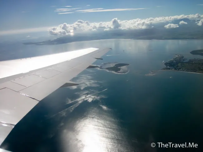 差不多到最後一分鐘粗眉仔才施施然登機,方發現閘口勁多人,原來所謂1至4號閘口都只係共用一個位,這都不緊要,最離譜的係有兩班同時間起飛的飛機都使用這個位登機,亂狀可想而知。比上次去斐濟時更離譜,粗眉仔和公主足足遲了半個鐘才上到飛機,上了飛機後白白焗了三十分鐘桑拿後才宣佈有糸統固障,要再等多二十分鐘,好在「補鑊」方面挺準時,十點鐘,飛機終於起飛,與太陽競賽,往西望遙遠的香港進發。