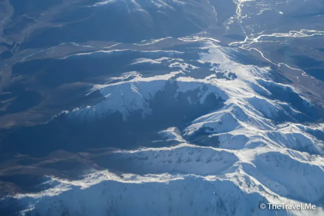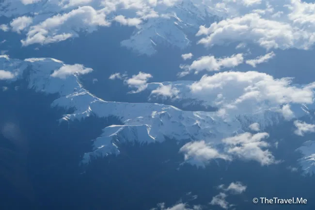 從南島上空俯瞰,但見雪山連綿,風景壯麗萬分。
