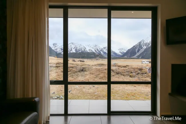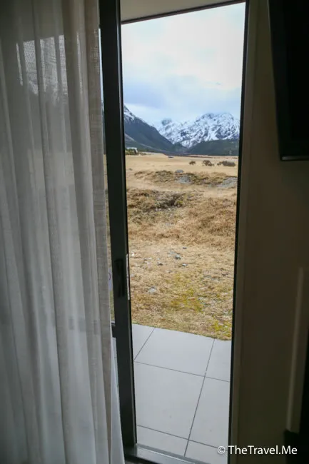 門的另一邊是一面落地大窗,望出去就是圖畫般的雪山美景。