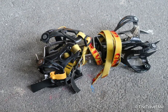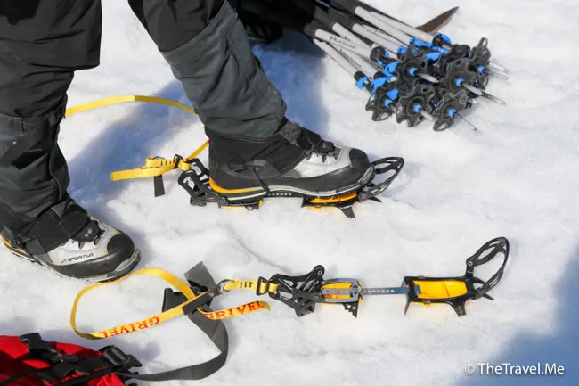 齊人後,大家替冰靴套上冰爪,冰川之旅開始了……