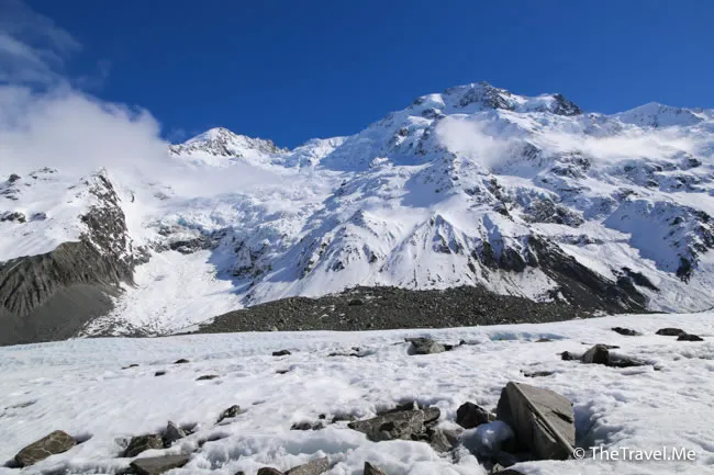 大概十分鐘,直升機便到了塔斯曼冰川之上。